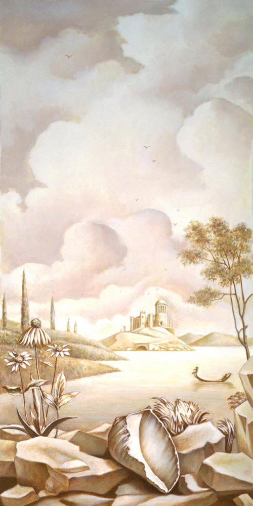 This second 2'x 4' panel on canvas was executed for a roller blind and is inspired by the painting style of famous muralist Graham Rust. |